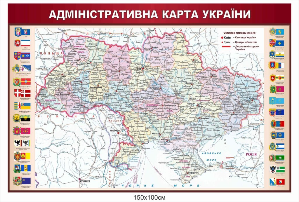 Купити – Адміністративна карта України на стіну – «Stendschool.com» Ви можете натиснувши кнопку “Додати в кошик”, або зателефонувавши за номерами – 050-645-61-81, 068-648-80-99.