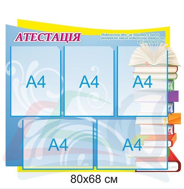 Купити – Інформаційний стенд “Атестація” «Stendschool.com» Ви можете, зателефонувавши за номерами, які вказані у верхній частині сайту, або оформити замовлення самостійно на сайті. Усі представлені стенди виготовлені з високоякісного ПВХ (пластику) товщиною 3 мм, який вкривається плівкою з повнокольоровим друком. «Кишені», в свою чергу, з прозорого пластику, який з часом не змінює колір. При транспортуванні ми огортаємо стенд у гофрокартон, що дозволяє безпечно їх транспортувати без ризику пошкодження.