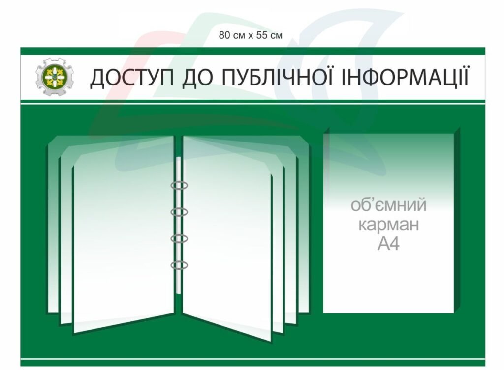 Купити – Інформаційний стенд “Доступ до публічної інформації” «Stendschool.com» Ви можете, зателефонувавши за номерами, які вказані у верхній частині сайту, або оформити замовлення самостійно на сайті. Усі представлені стенди виготовлені з високоякісного ПВХ (пластику) товщиною 3 мм, який вкривається плівкою з повнокольоровим друком. «Кишені», в свою чергу, з прозорого пластику, який з часом не змінює колір. При транспортуванні ми огортаємо стенд у гофрокартон, що дозволяє безпечно їх транспортувати без ризику пошкодження.