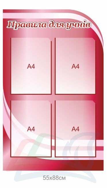 Купити – Інформаційний стенд “Правила для учнів” «Stendschool.com» Ви можете, зателефонувавши за номерами, які вказані у верхній частині сайту, або оформити замовлення самостійно на сайті. Усі представлені стенди виготовлені з високоякісного ПВХ (пластику) товщиною 3 мм, який вкривається плівкою з повнокольоровим друком. «Кишені», в свою чергу, з прозорого пластику, який з часом не змінює колір. При транспортуванні ми огортаємо стенд у гофрокартон, що дозволяє безпечно їх транспортувати без ризику пошкодження.