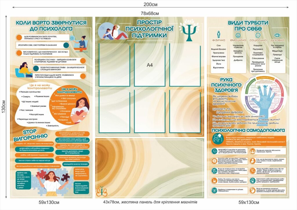 - Стенд з кишенями А4 “Простір психологічної підтримки”