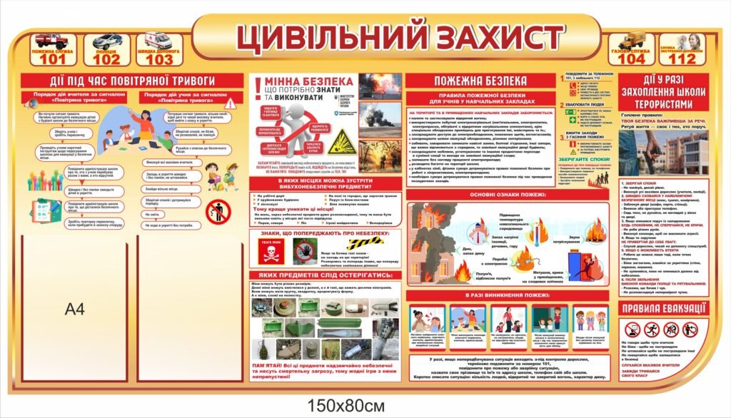 Купити – Куточок з цивільного захисту для школи – «Stendschool.com» Ви можете натиснувши кнопку “Додати в кошик”, або зателефонувавши за номерами – 050-645-61-81, 068-648-80-99.