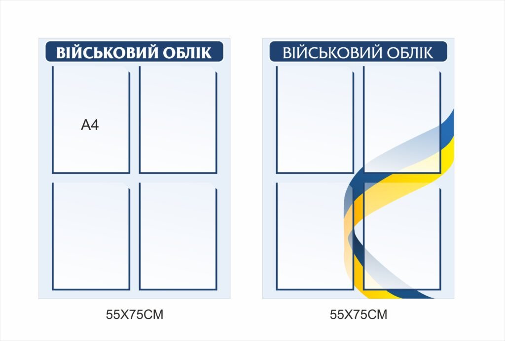 Можна безкоштовно внести зміни у готовий макет (колір, тексти, шрифти, наповнення). Також ми можемо розробити дизайн стенда з нуля відповідно до ваших побажань і вимог – без додаткової оплати.