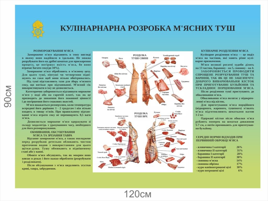 - Стенд “Технологія обробки м’яса та приготування м’ясних напівфабрикатів”