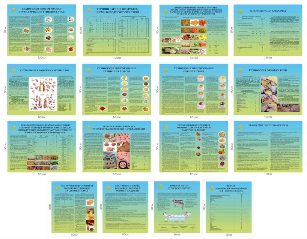так і окремі плакати для військової їдальні — всі вони доступні за посиланнями нижче.До комплекту входять такі стенди: