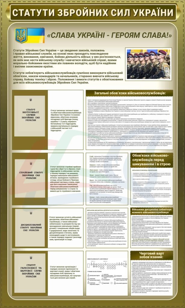 Купити – Плакат для військових “Статути ЗСУ” «Stendschool.com» Ви можете, зателефонувавши за номерами, які вказані у верхній частині сайту, або оформити замовлення самостійно на сайті.
