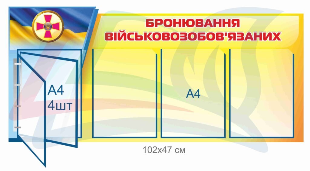 Стенд “Бронювання військовозобов’язаних” призначений для надання важливої інформації щодо бронювання та мобілізаційних процесів військовозобов’язаних