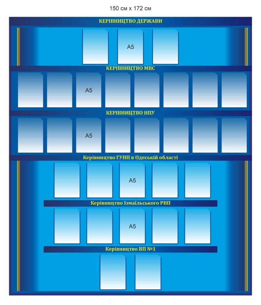 Купити – Стенд для поліції “Керівництво” – «Stendschool.com» Ви можете натиснувши кнопку “Додати в кошик”, або зателефонувавши за номерами – 050-645-61-81, 068-648-80-99.