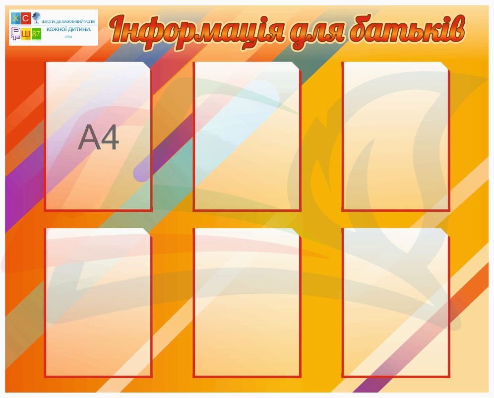 Купити – Стенд для школи “Інформація для батьків” «Stendschool.com» Ви можете, зателефонувавши за номерами, які вказані у верхній частині сайту, або оформити замовлення самостійно на сайті. Усі представлені стенди виготовлені з високоякісного ПВХ (пластику) товщиною 3 мм, який вкривається плівкою з повнокольоровим друком. «Кишені», в свою чергу, з прозорого пластику, який з часом не змінює колір. При транспортуванні ми огортаємо стенд у гофрокартон, що дозволяє безпечно їх транспортувати без ризику пошкодження.