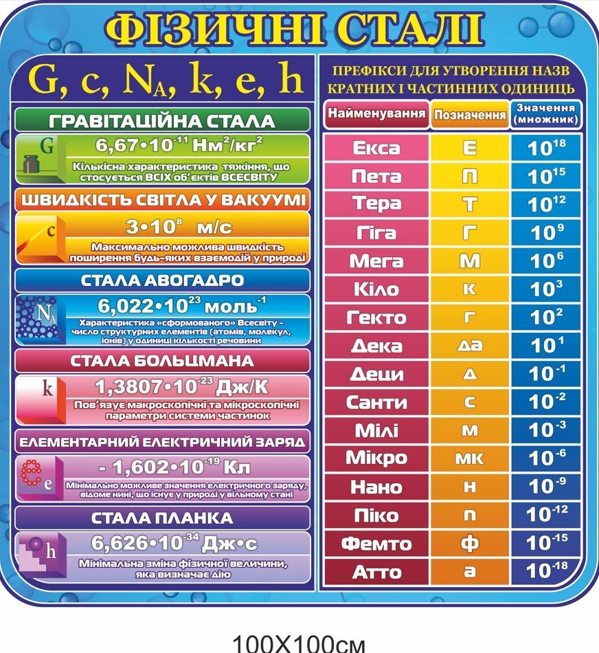 Стенд “Фізичні сталі” для оформлення кабінету фізики