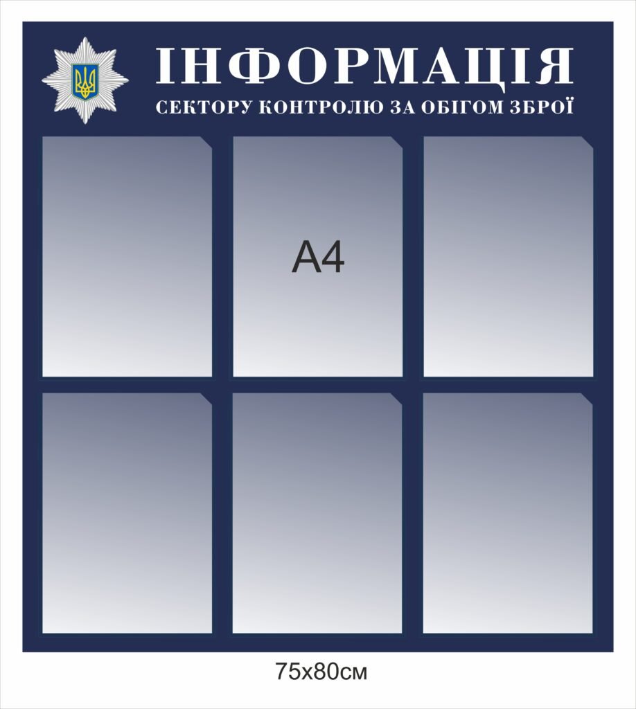 Купити – Стенд “Інформація сектору контролю за обігом зброї” – «Stendschool.com» Ви можете натиснувши кнопку “Додати в кошик”, або зателефонувавши за номерами – 050-645-61-81, 068-648-80-99.