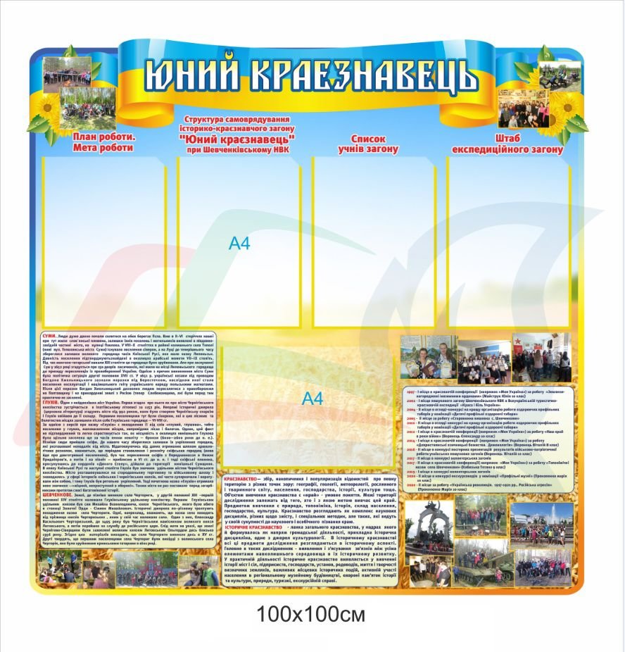 Купити – Стенд “Юний краєзнавець” «Stendschool.com» Ви можете, зателефонувавши за номерами, які вказані у верхній частині сайту, або оформити замовлення самостійно на сайті. Усі представлені стенди виготовлені з високоякісного ПВХ (пластику) товщиною 3 мм, який вкривається плівкою з повнокольоровим друком. «Кишені», в свою чергу, з прозорого пластику, який з часом не змінює колір. При транспортуванні ми огортаємо стенд у гофрокартон, що дозволяє безпечно їх транспортувати без ризику пошкодження.
