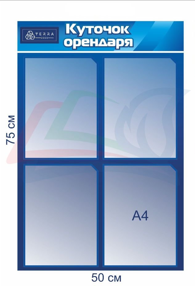 Купити – Стенд “Куточок орендаря” «Stendschool.com» Ви можете, зателефонувавши за номерами, які вказані у верхній частині сайту, або оформити замовлення самостійно на сайті. Усі представлені стенди виготовлені з високоякісного ПВХ (пластику) товщиною 3 мм, який вкривається плівкою з повнокольоровим друком. «Кишені», в свою чергу, з прозорого пластику, який з часом не змінює колір. При транспортуванні ми огортаємо стенд у гофрокартон, що дозволяє безпечно їх транспортувати без ризику пошкодження.