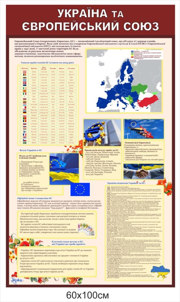 Купити – Стенд “Україна і Європейський союз” – «Stendschool.com» Ви можете натиснувши кнопку “Додати в кошик”, або зателефонувавши за номерами – 050-645-61-81, 068-648-80-99.