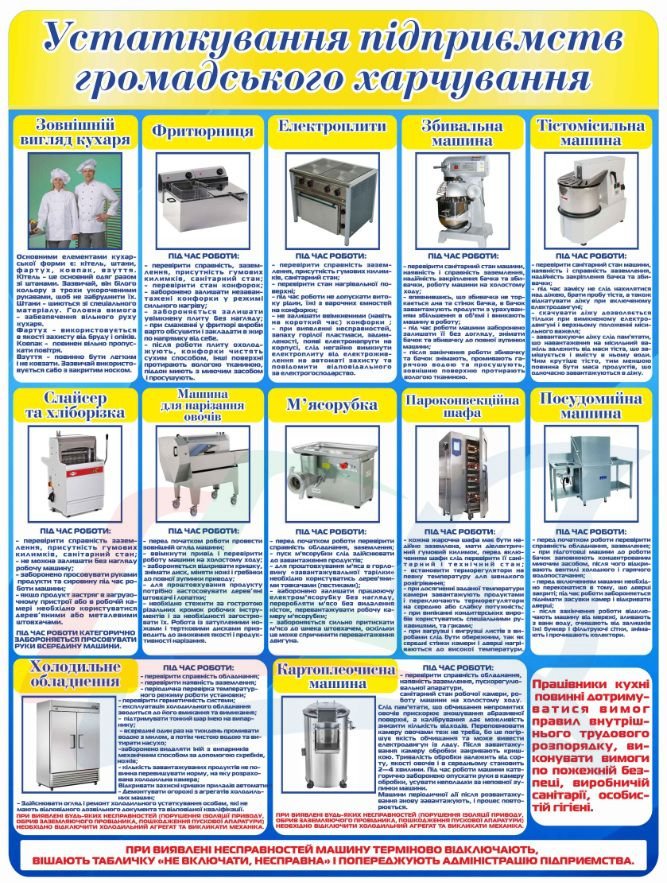 Купити – Стенд “Устаткування підприємств громадського харчування” «Stendschool.com» Ви можете, зателефонувавши за номерами, які вказані у верхній частині сайту, або оформити замовлення самостійно на сайті. Усі представлені стенди виготовлені з високоякісного ПВХ (пластику) товщиною 3 мм, який вкривається плівкою з повнокольоровим друком. «Кишені», в свою чергу, з прозорого пластику, який з часом не змінює колір. При транспортуванні ми огортаємо стенд у гофрокартон, що дозволяє безпечно їх транспортувати без ризику пошкодження.