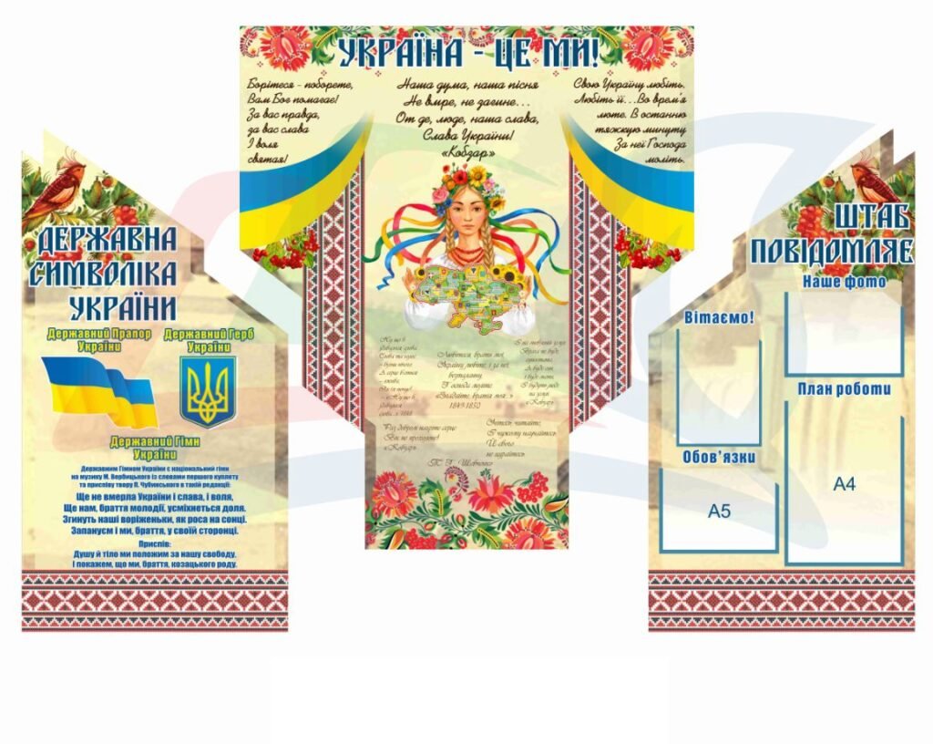 Також стенди з державними символами – Ви можете знайти у наших партнерів – D-Grand.com