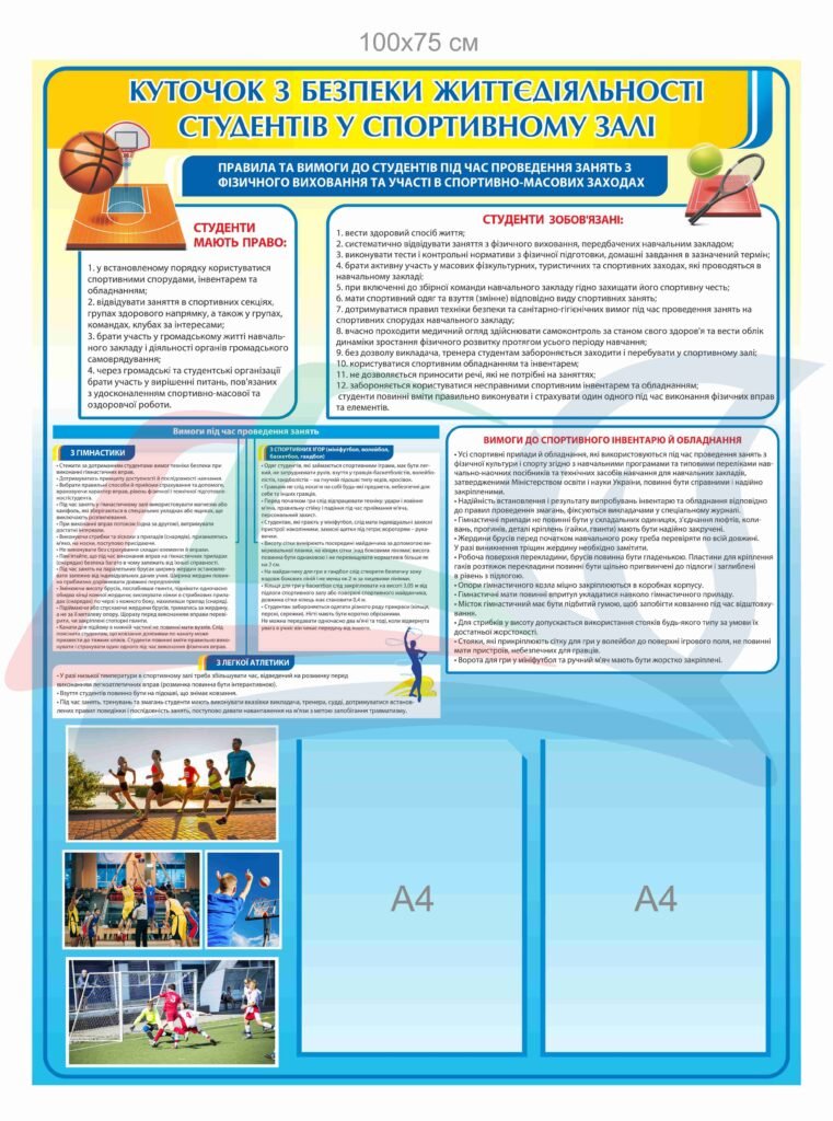 Стенд з техніки безпеки у спортзалі