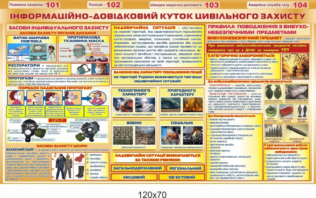 Купити Стенд “Інформаційно-довідниковий куток цивільного захисту” – «Stendschool.com» Ви можете натиснувши кнопку “Додати в кошик”, або зателефонувавши за номерами – 050-645-61-81, 068-648-80-99.