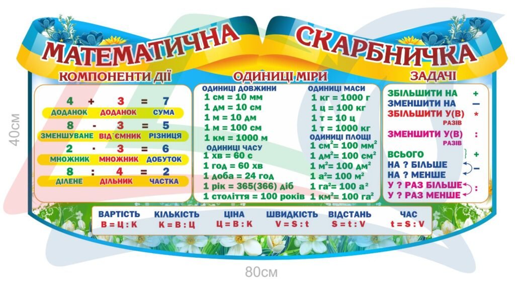 Купити стенд з математики для молодших класів «Stendschool.com» Ви можете, зателефонувавши за номерами, які вказані у верхній частині сайту, або оформити замовлення самостійно на сайті. Усі представлені стенди виготовлені з високоякісного ПВХ (пластику) товщиною 3 мм, який вкривається плівкою з повнокольоровим друком. «Кишені», в свою чергу, з прозорого пластику ПВХ товщиною 0.4мм. При транспортуванні ми огортаємо стенд у гофрокартон, що дозволяє безпечно їх транспортувати без ризику пошкодження.