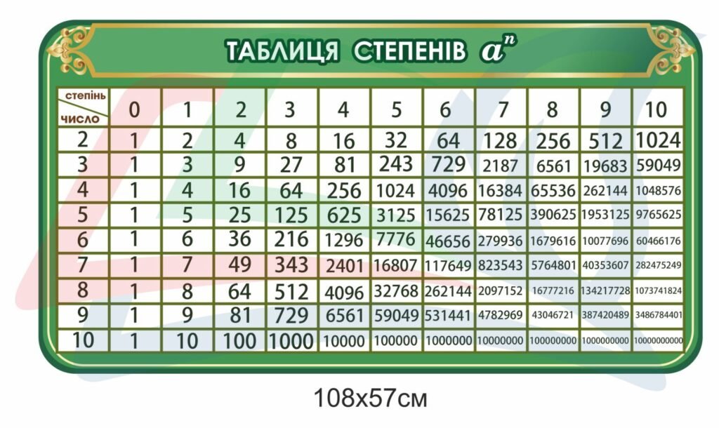 Купити – Стенд з математики “Таблиця степенів” «Stendschool.com» Ви можете, зателефонувавши за номерами, які вказані у верхній частині сайту, або оформити замовлення самостійно на сайті. Усі представлені стенди виготовлені з високоякісного ПВХ (пластику) товщиною 3 мм, який вкривається плівкою з повнокольоровим друком. «Кишені», в свою чергу, з прозорого пластику, який з часом не змінює колір. При транспортуванні ми огортаємо стенд у гофрокартон, що дозволяє безпечно їх транспортувати без ризику пошкодження.